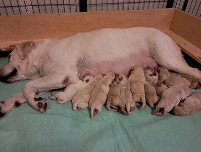 All yellow litter of 12 with true English bloodlines. Born November 2nd 2025. Ready to go home the weekend after New Years...Jan 3rd.