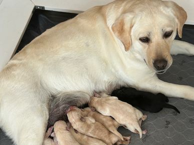 Born July 2020, Bessie is our Covid girl. Slow to warm up to strangers, she is absolutely devoted once you're her people. Giving all the love and affection expected of an outstanding Labrador temperament. A great full time house dog & watch dog. She is well behaved in the car & the house.